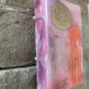 encaustic mixed media collage on wood with deco foil and pan pastel accents, 2022